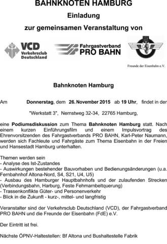 Diskussion: "Bahnknoten Hamburg" am 26. November 2015